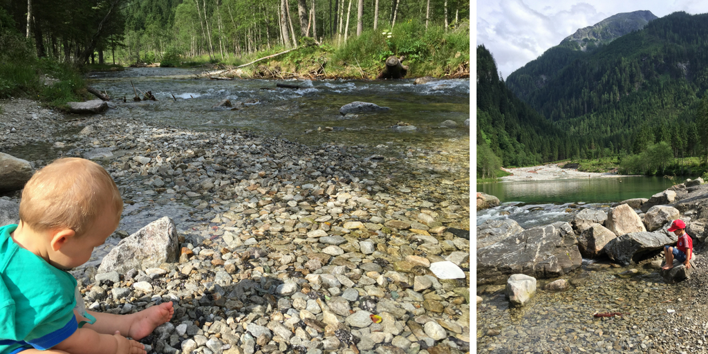 Ich und die Jungs haben bei den Temperaturen damals direkt die Schuhe ausgezogen sind ins eiskalte Bergwasser gestiegen. Es war perfekt. Kein Wunder also, dass es kurz vor dem Bergsee noch eine kleine Kneipp-Anlage gab. Wir sind zwar nicht rein, aber dem Kreislauf tut das Kneippen richtig gut!