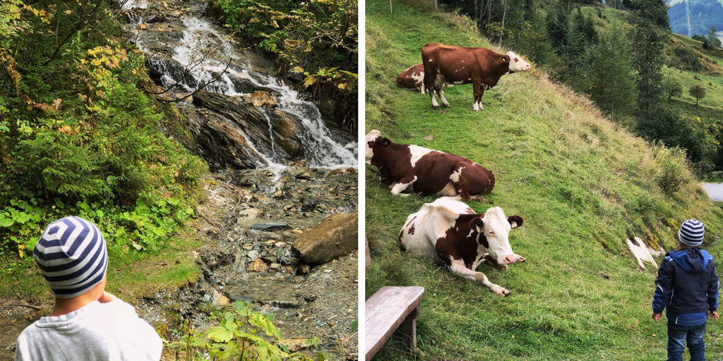 Vom Parkplatz aus schlängelte sich der Schotterweg weiter hinauf, vorbei an Häusern, Wiesen, ja, und sogar an einem kleinen Wasserfall kamen wir vorbei. Die gibt es im Großarltal wirklich an jeder Ecke.